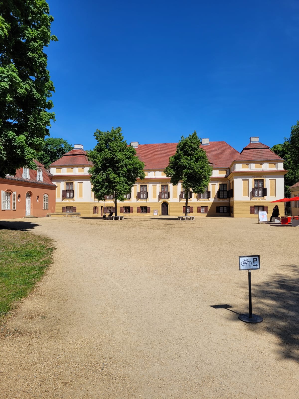 Dort fuhren wir zum Schloss, das dort prächtig restauriert als das älteste, erhalten gebliebene Lustschloss aus der Zeit des Großen Kurfürsten Friedrich Wilhelm von Brandenburg zu besichtigen ist. Innen sind barock ausgestaltete und eingerichtete Säle und Räume zu besichtigen, die die fürstliche Wohnkultur um 1700 repräsentiert. Am Ufer der Havel gelegen und ausgestattet mit einem herrlichen Altbaumbestand gehört zum Schloss ein kleiner, in Anlehnung an einen Plan von Peter Joseph Lenné geschaffener Landschaftsgarten mit wunderbaren Ausblicken, die wir bei schönstem Sonnenwetter genossen.