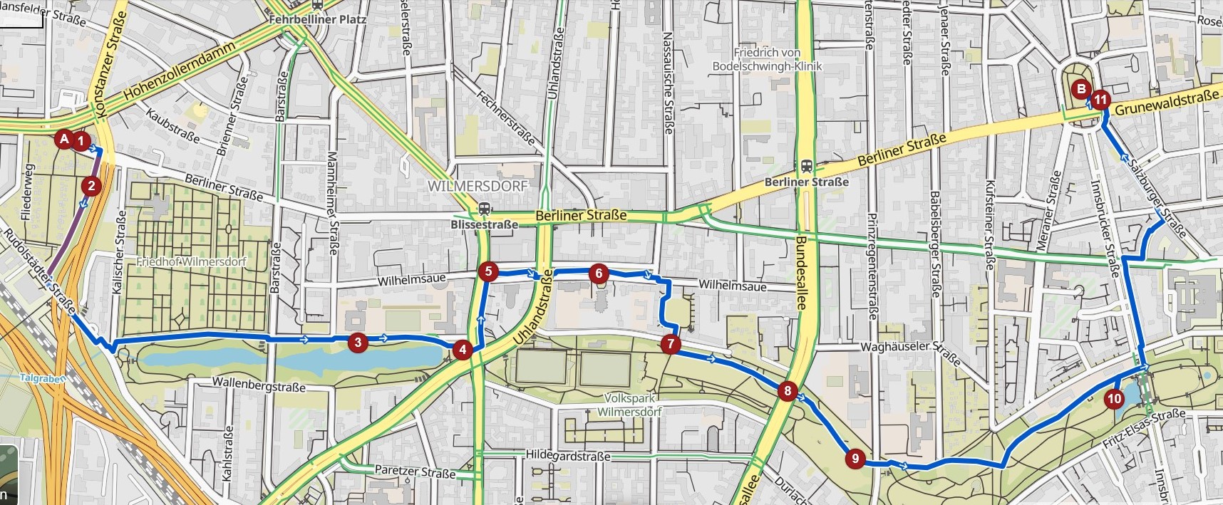 Von dort ging es dann in nördlicher Richtung, im Rücken des Schöneberger Rathauses, entlang der Innsbrucker Str. und Salzburger Str., um schließlich den Bayerischen Platz zu erreichen.