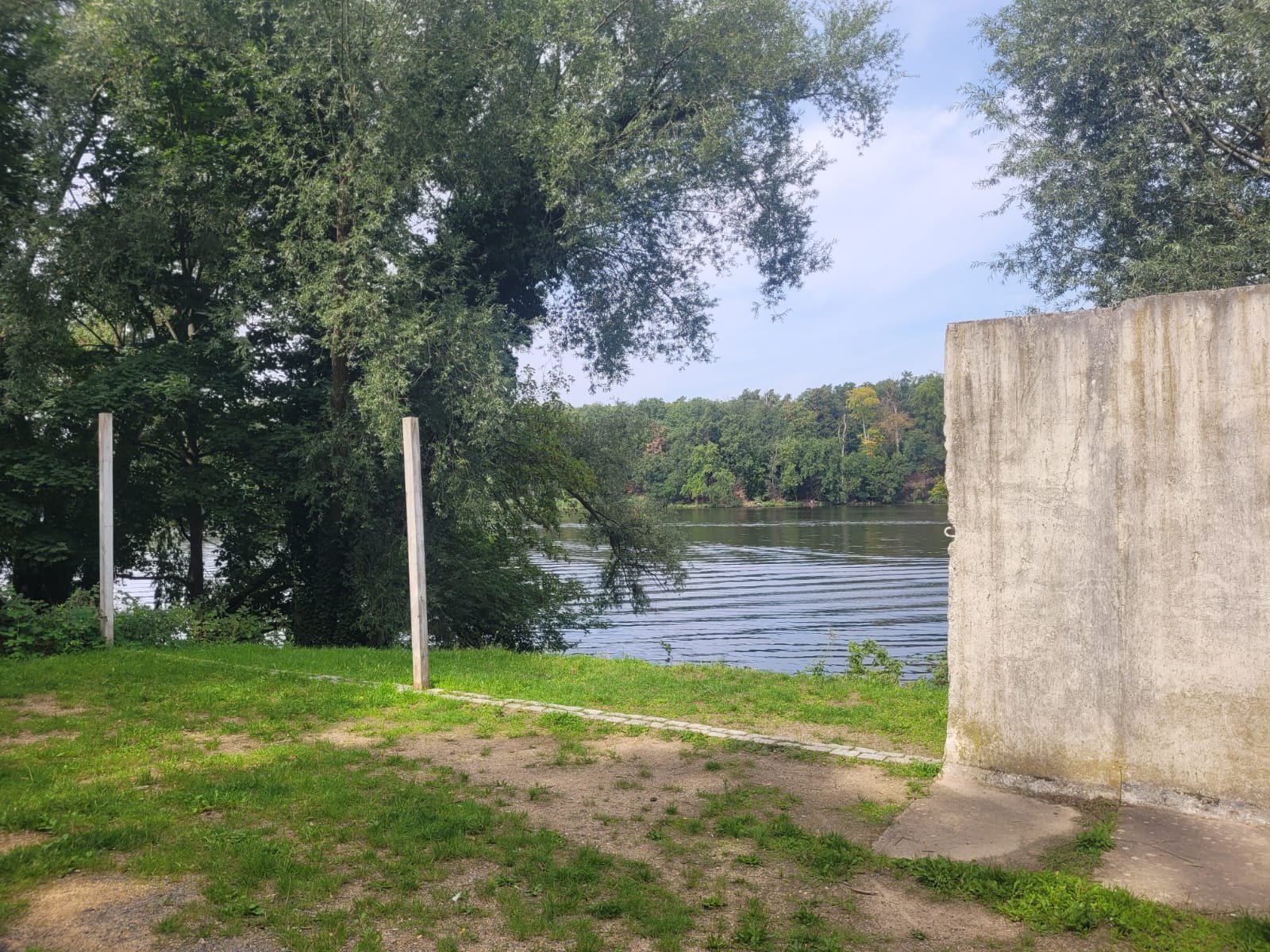 Hinter derKanalbrücke erreichten wir Steinstücken, die frühere West-Berliner Exklave im Gebiet der DDR. Weiter kamen wir an den Bäkewiesen vorbei und fuhren auf der ehemaligen DDR-Seite des Sees am Griebnitzsee entlang. Hier gibt es leider nur teilweise eine Uferpromenade, die mehrmals unterbrochen ist. Anrainer haben ihre Grundstücke bis zum Ufer des Sees durchgezogen und so den Weg gesperrt.