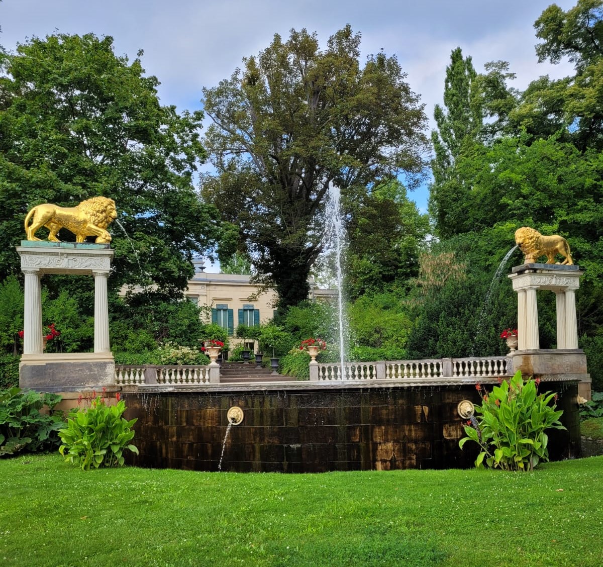 Nach der kleinen Pause ging es dann weiter durch den kleinen Ort, bis zur Königstr. Dort trafen wir auf das Schloss Glienicke mit der schönen Löwenfontäne am Eingang.
